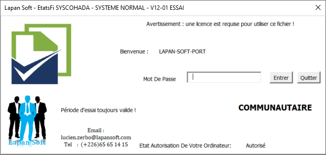Etablissez vos états financiers au format SYSCOHADA REVISE en faisant un « copier-coller » d’une balance Excel à 6 colonnes. Cette version comporte la liasse fiscale du BURKINA FASO et est compatible pour l'Export xml vers Esintax.